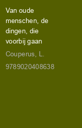 Heruitgave van klassieker, voorzien van authentieke illustraties en een nieuw nawoord. Meesterlijk beeld van de wereld rond 1900. Van oude menschen, de dingen, die voorbijgaan is het met weergaloos talent vertelde verhaal van twee zeer oude mensen, wier schijnbaar rustige leven geheel wordt beheerst door de wroeging om een vreselijke, in een ver verleden gepleegde misdaad, die reeds zolang voorbij schijnt maar toch onontkoombaar aanwezig blijft. De spanning, die voortdurend sterker voelbaar wordt doordat alle personen min of meer bij dit drama betrokken zijn, geeft je ten slotte het gevoel dat je in een net verstrikt bent dat steeds strakker wordt aangehaald.